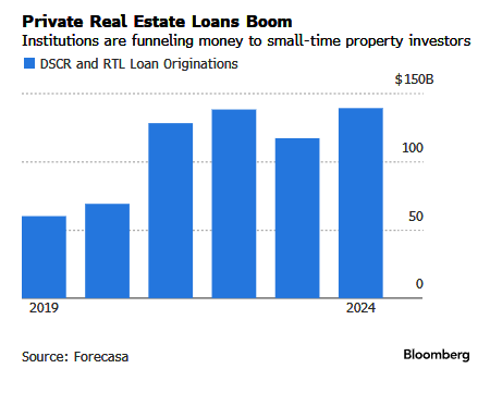 Bloomberg data shows the hard money lending industry has swelled, generating $140 billion in debt last year and appears poised for another annual record.